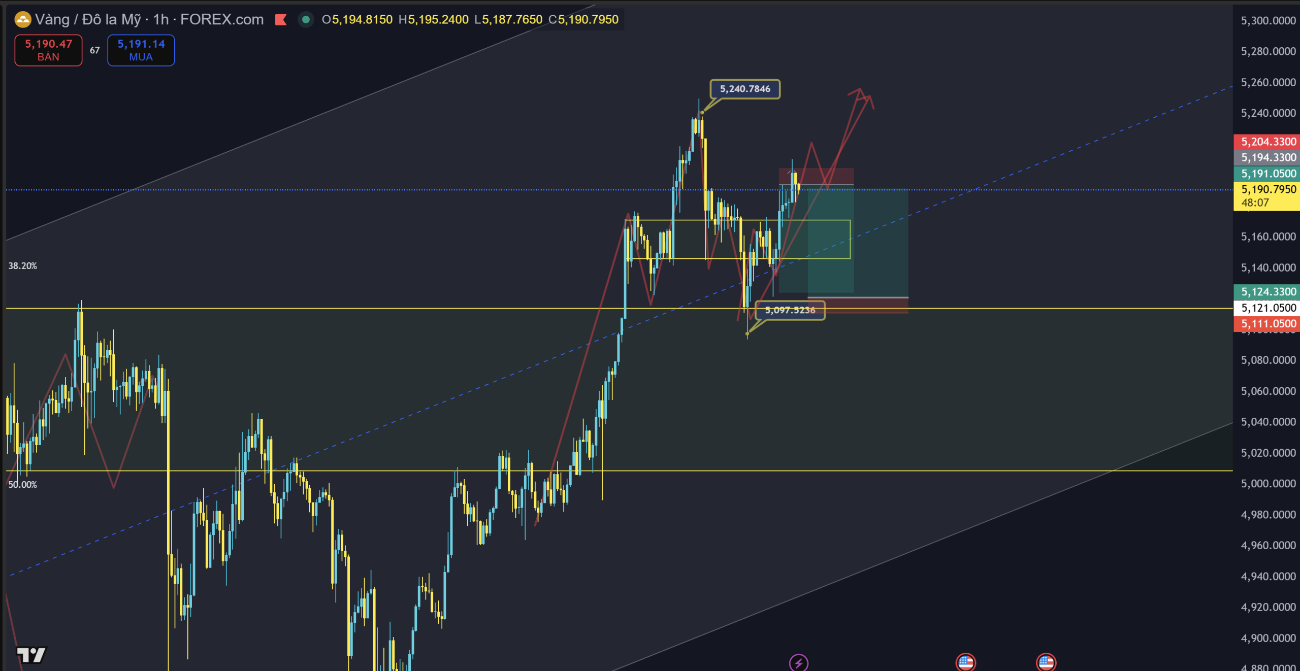 Vàng đã tạo đáy ở 5097$ sau nhịp tạo đỉnh từ 5240$, coi như cũng đã tạo được nhịp retest lại rồi.